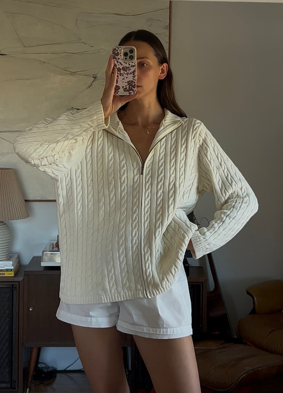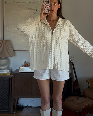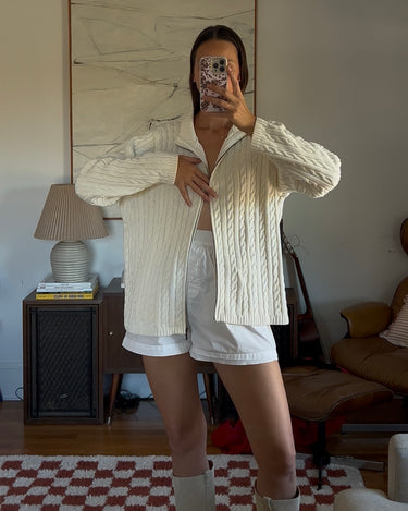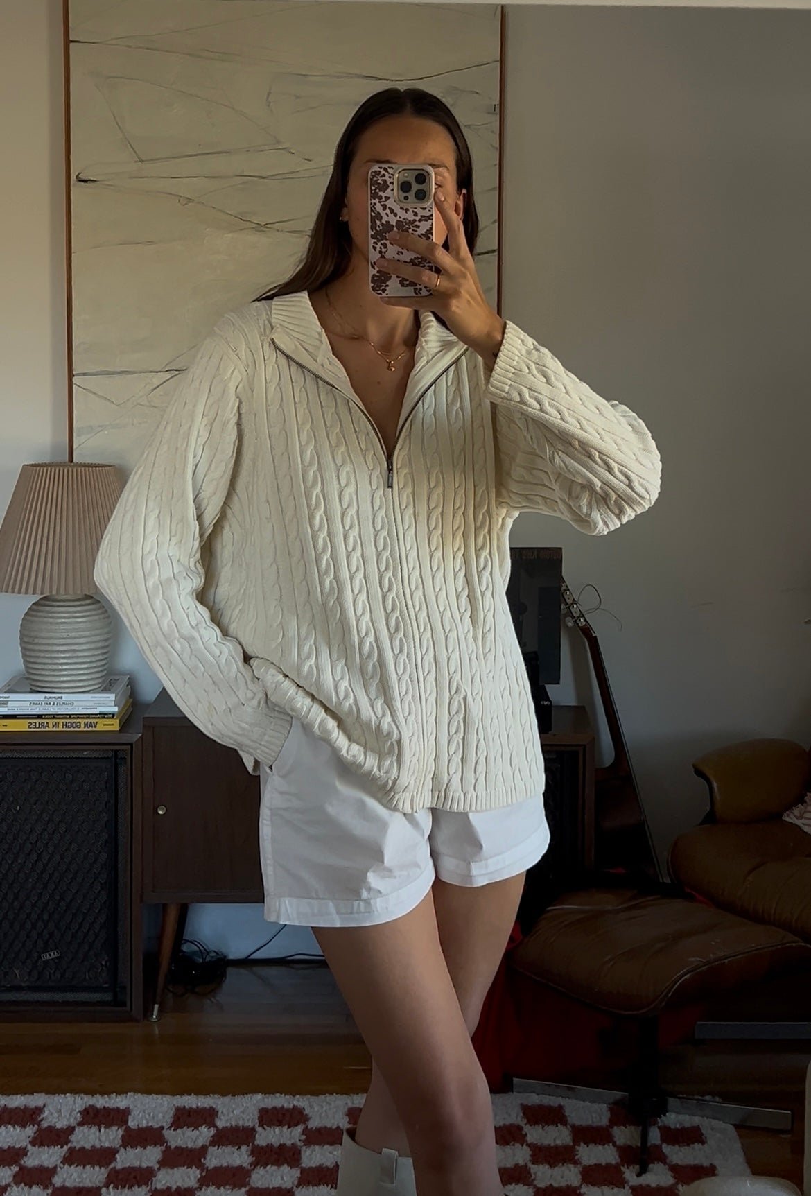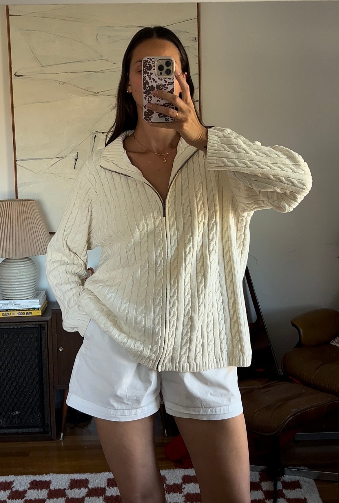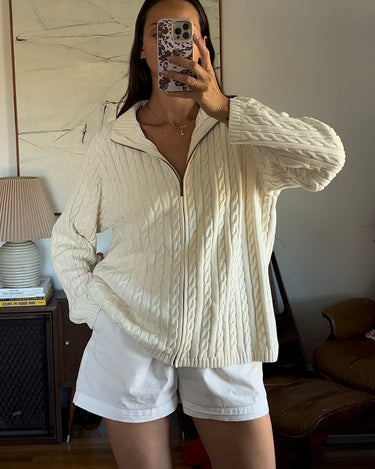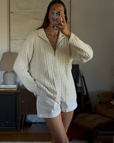 A timeless yet nostalgia 90s gem - A classic L.L. Bean cableknit zip up.