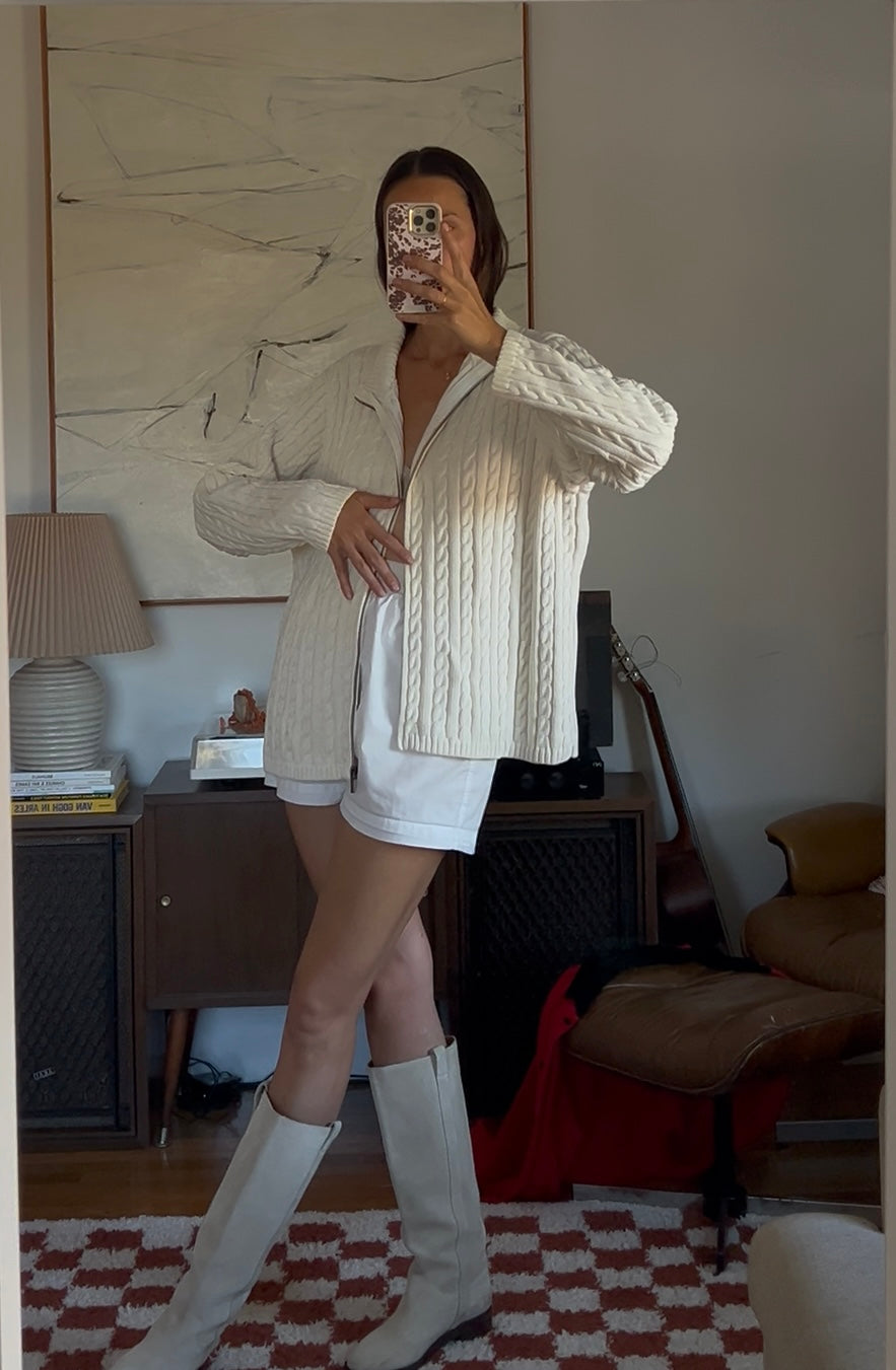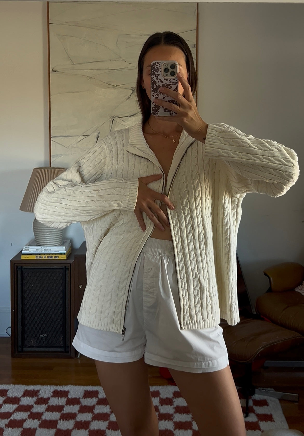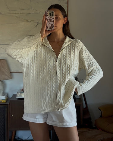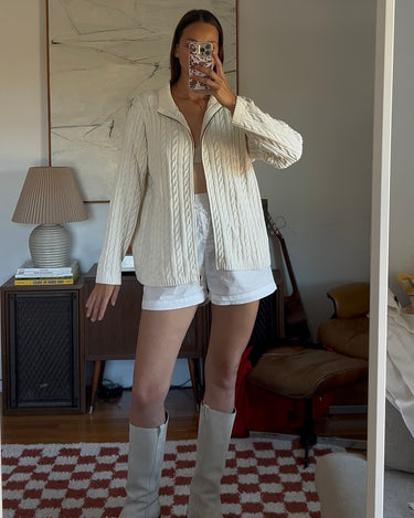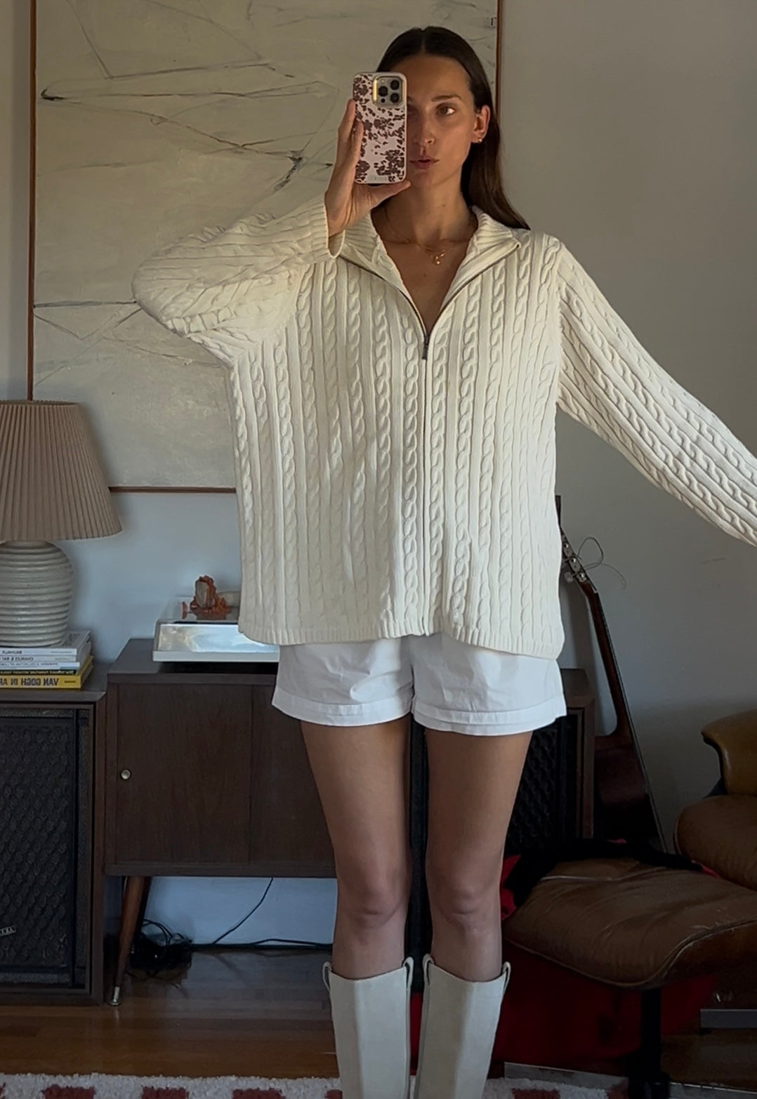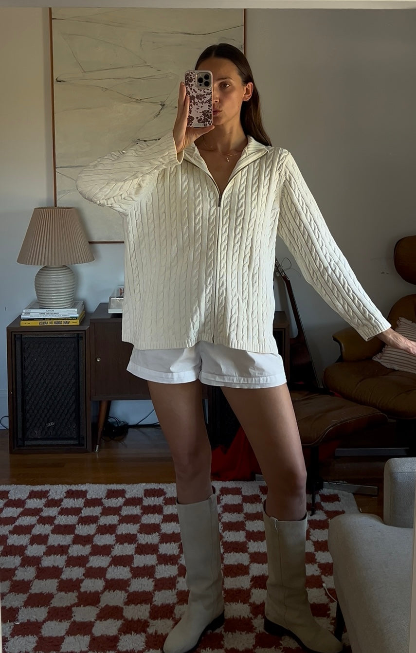 A timeless yet nostalgia 90s gem - A classic L.L. Bean cableknit zip up.