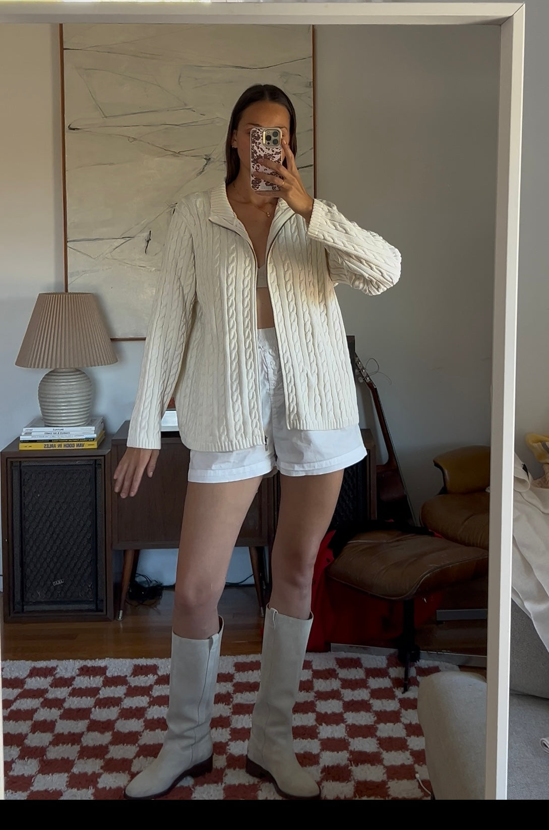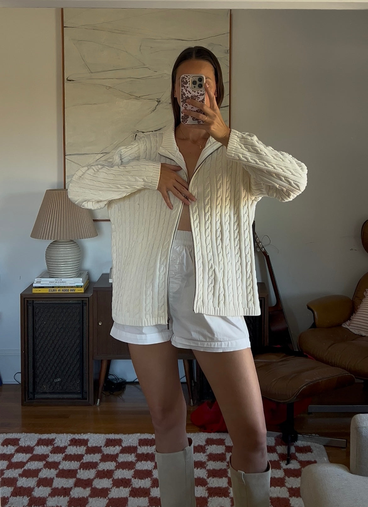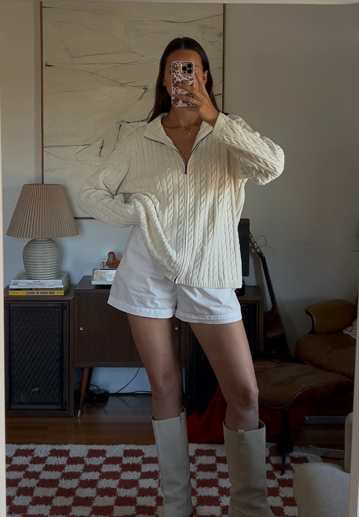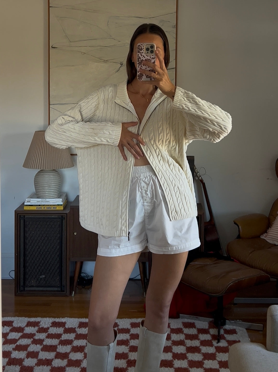 A timeless yet nostalgia 90s gem - A classic L.L. Bean cableknit zip up.