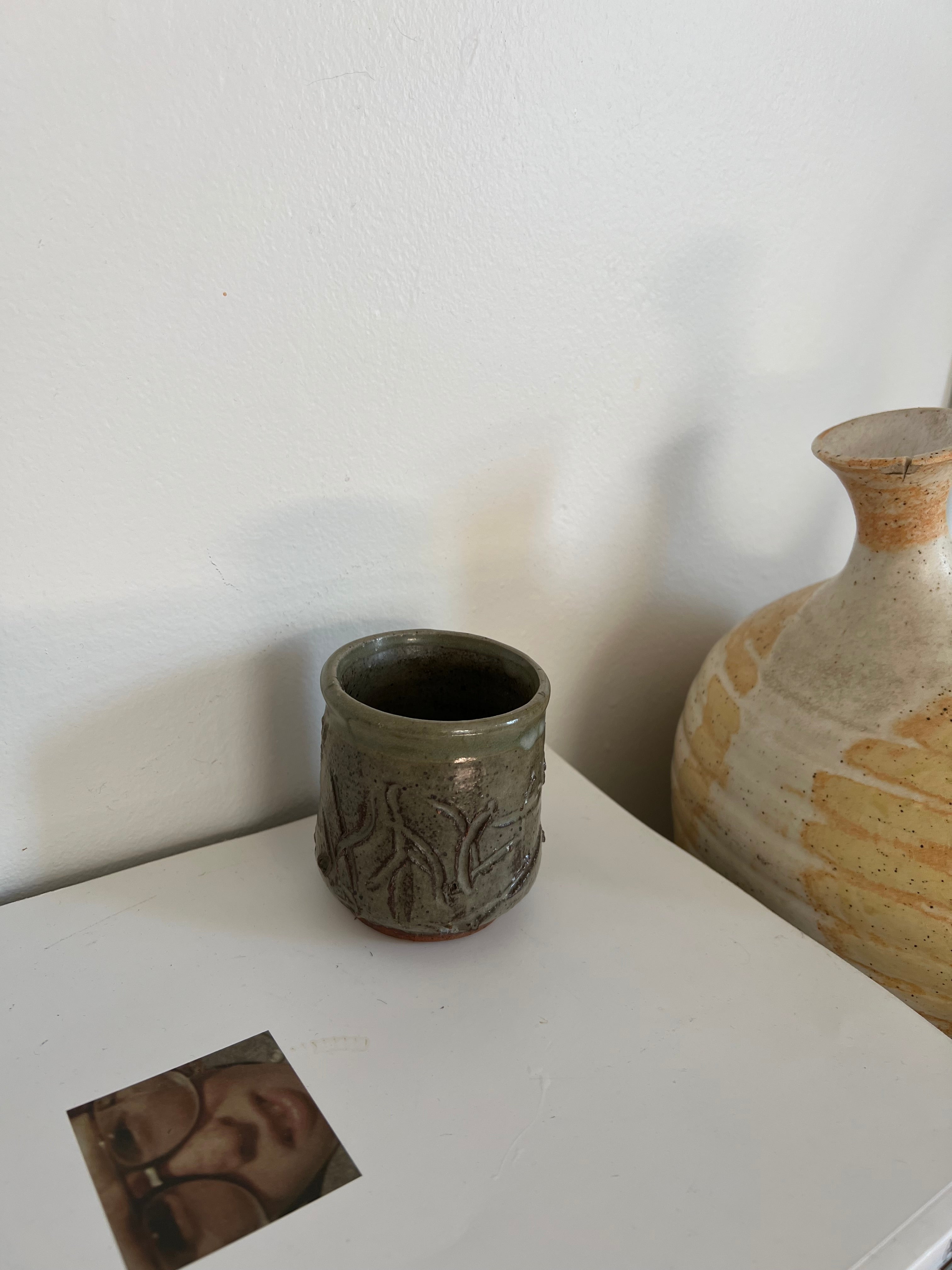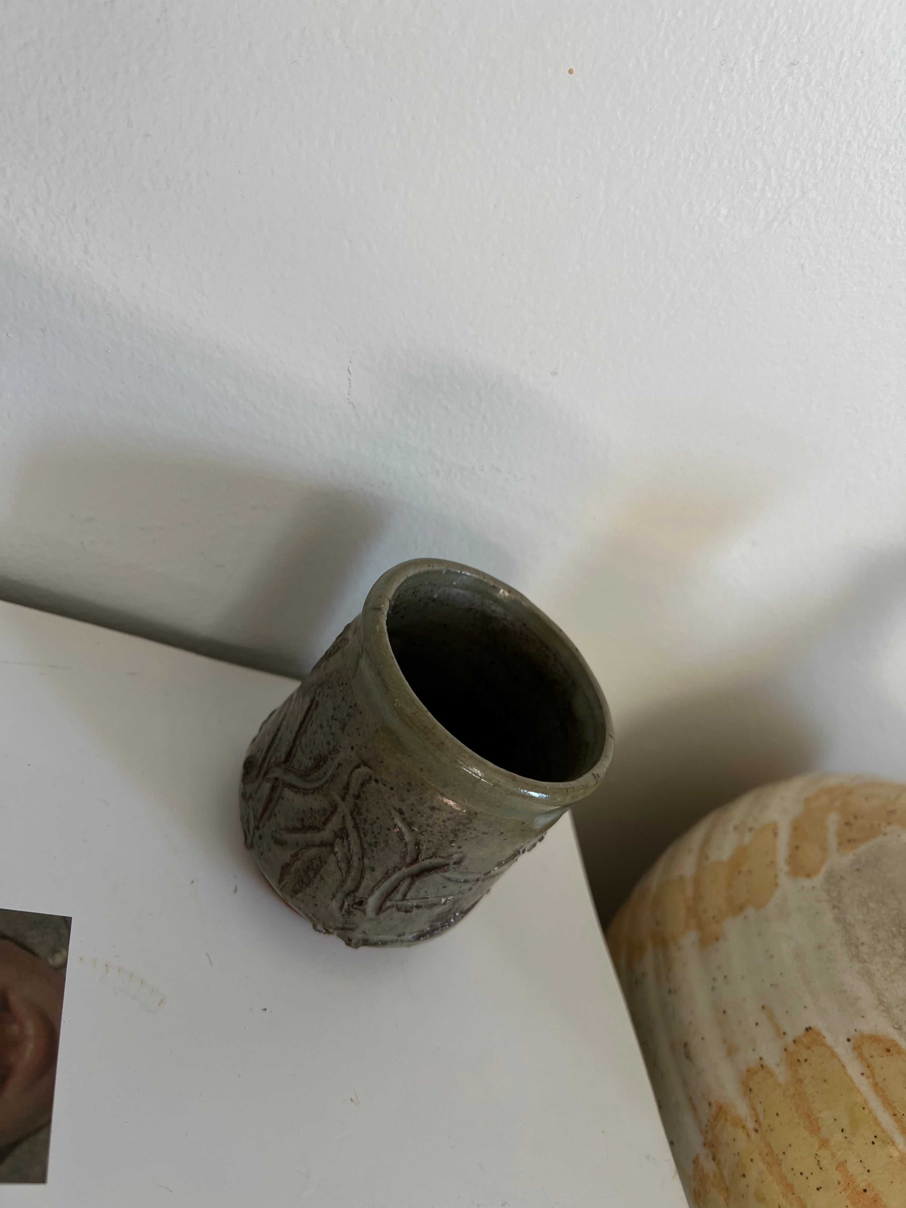 Green glaze with hand carved elements