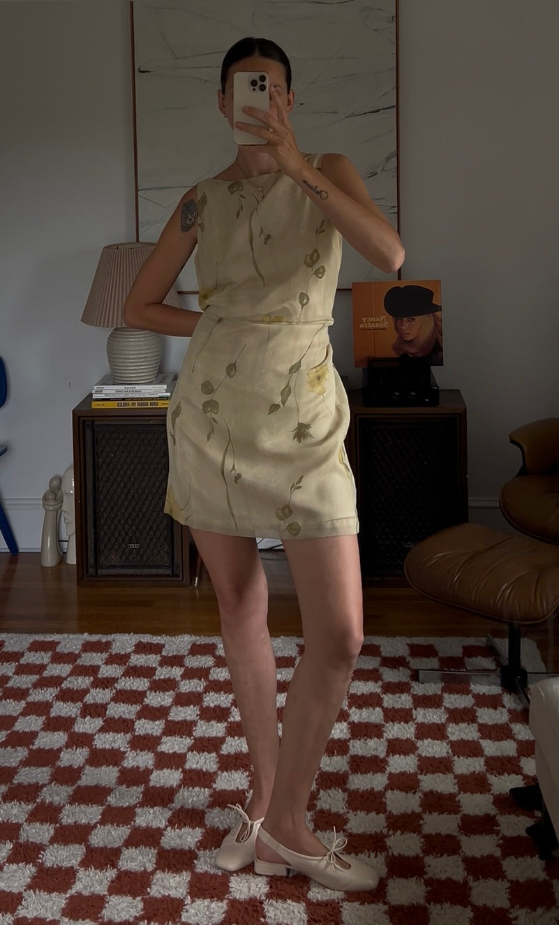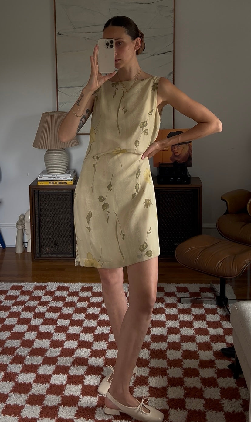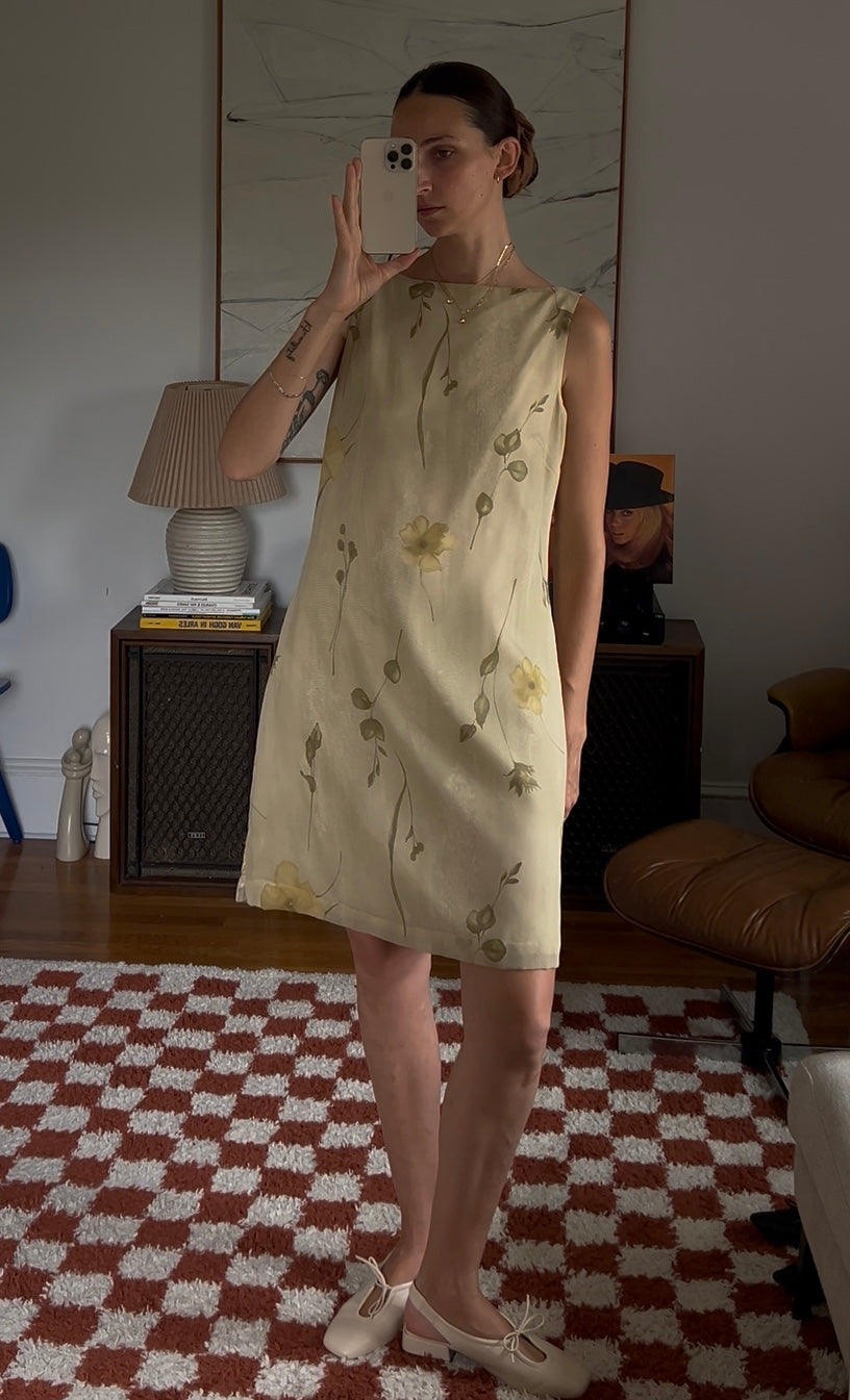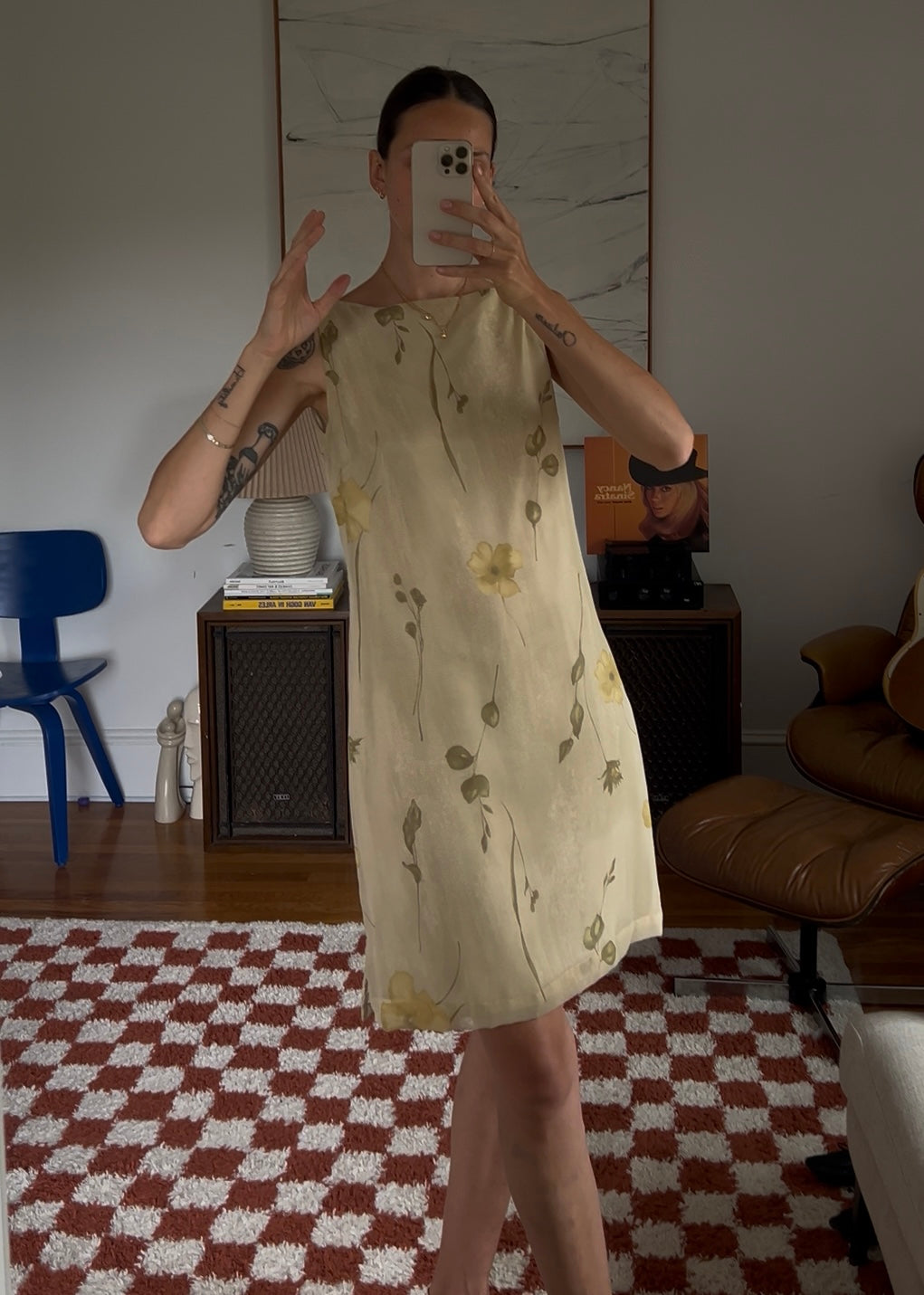 Quintessential 90’s dress with a straight silhouette and boat-neckline.