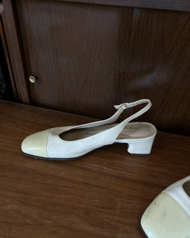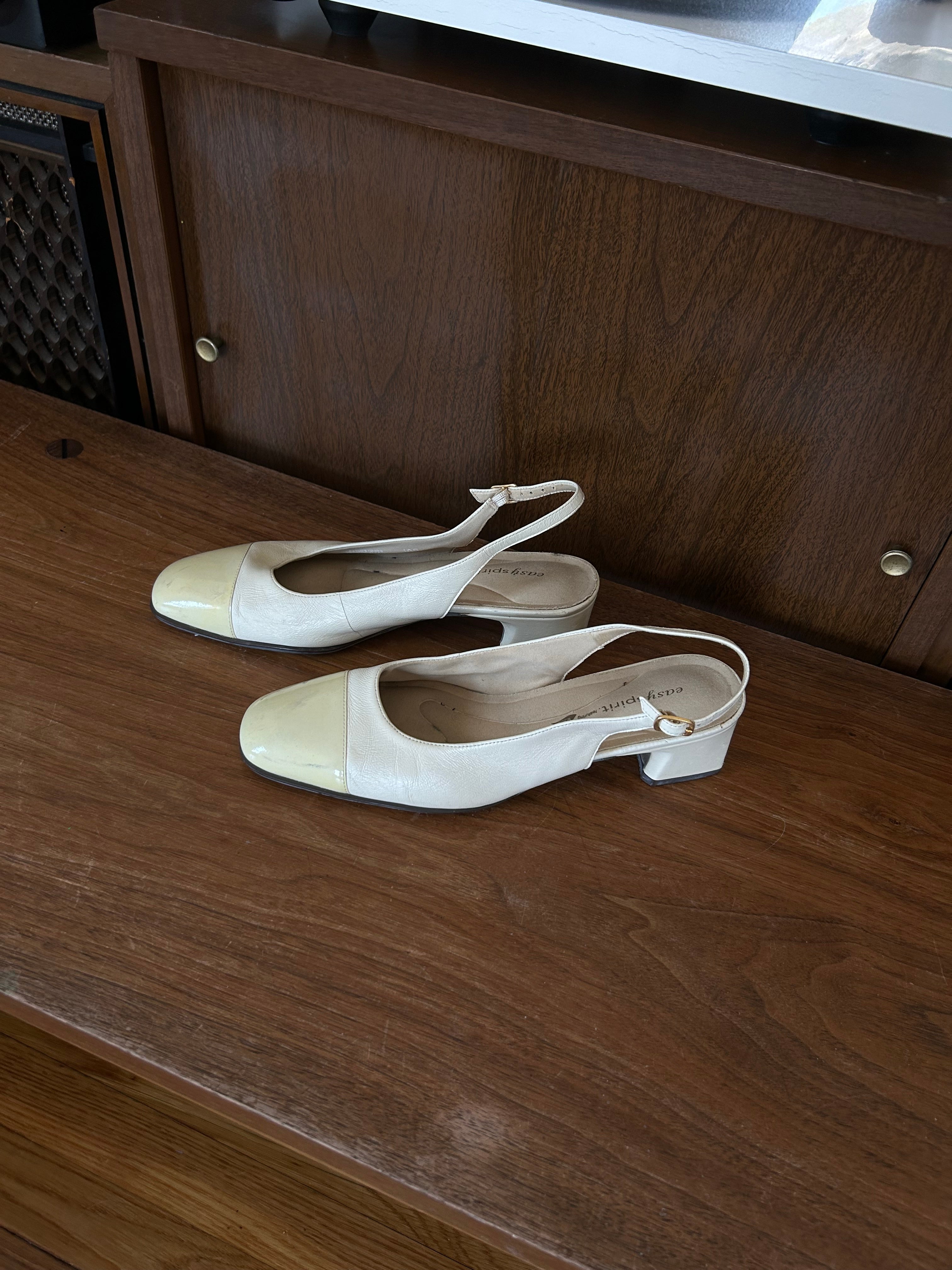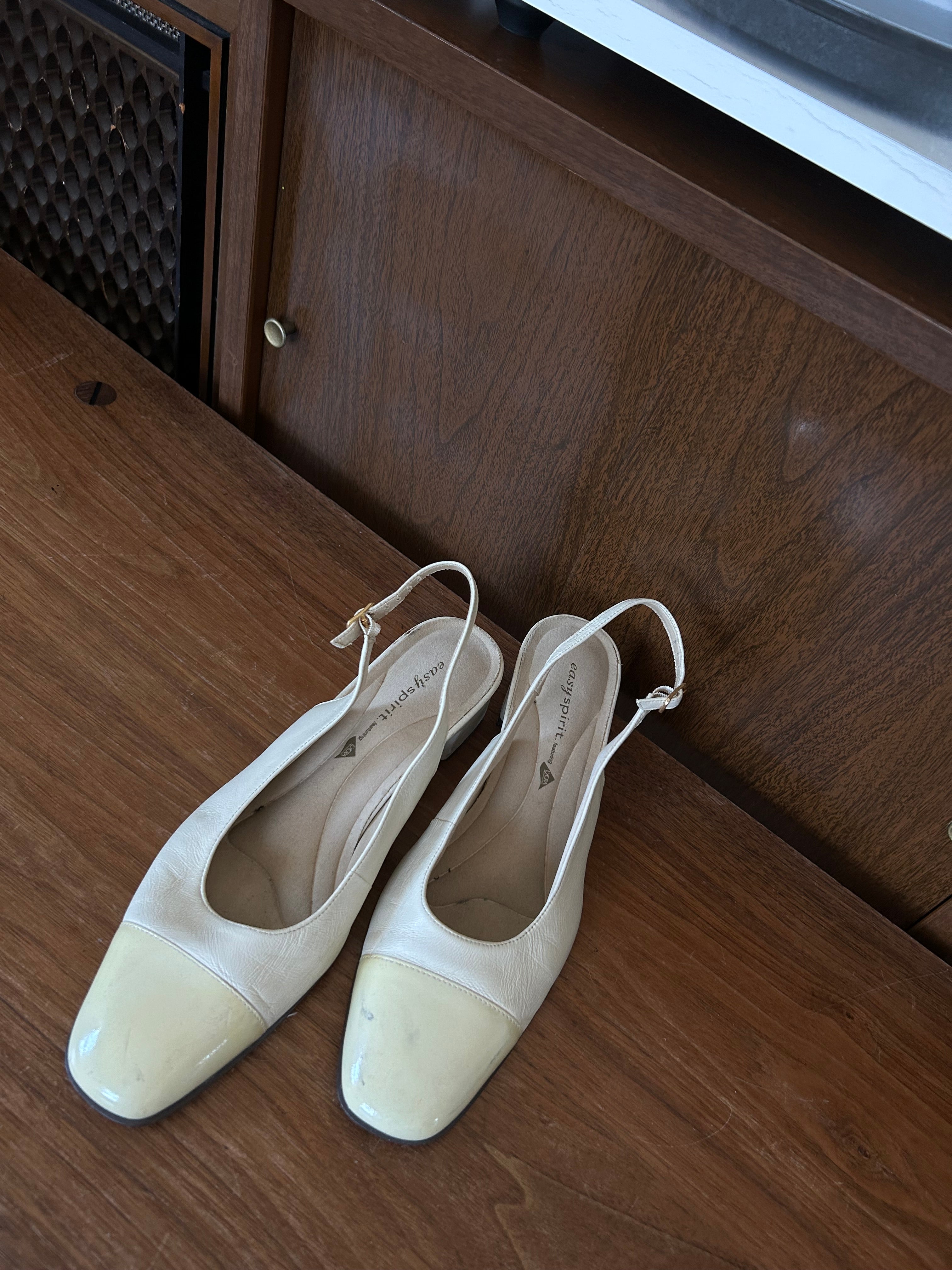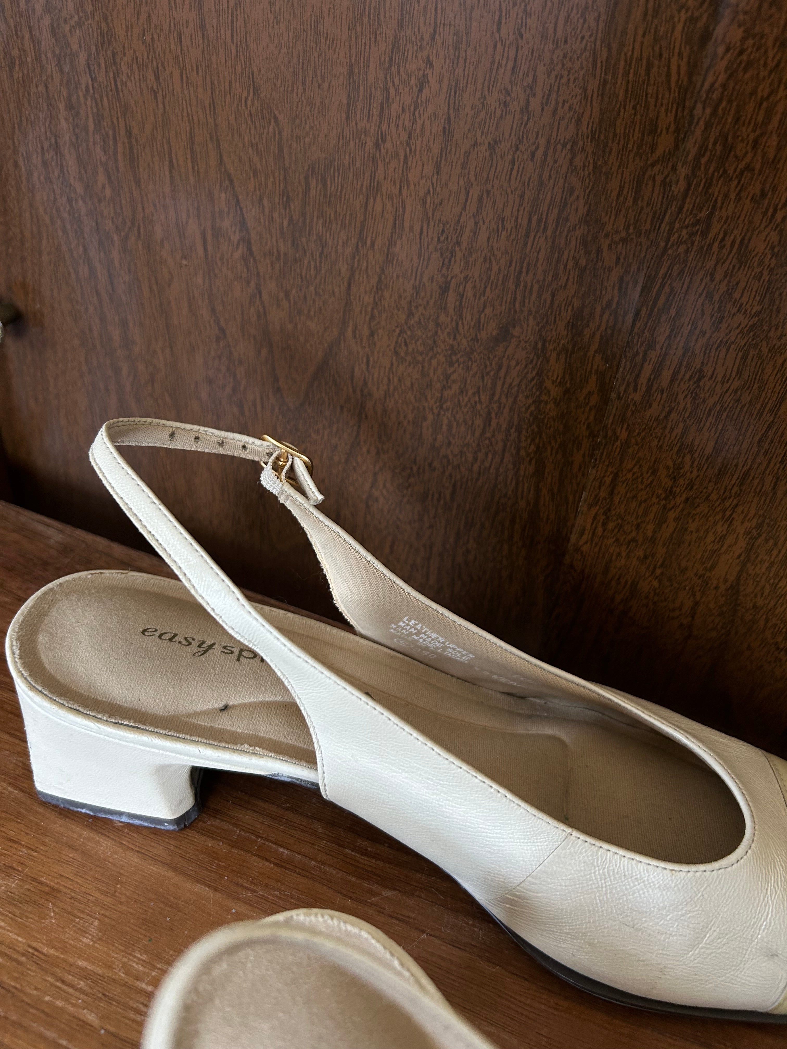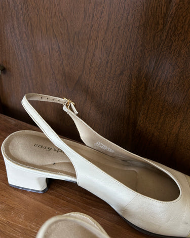 Ivory leather slingback - slight smudge on left toe (removable with proper cleaner).