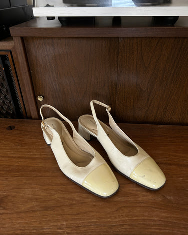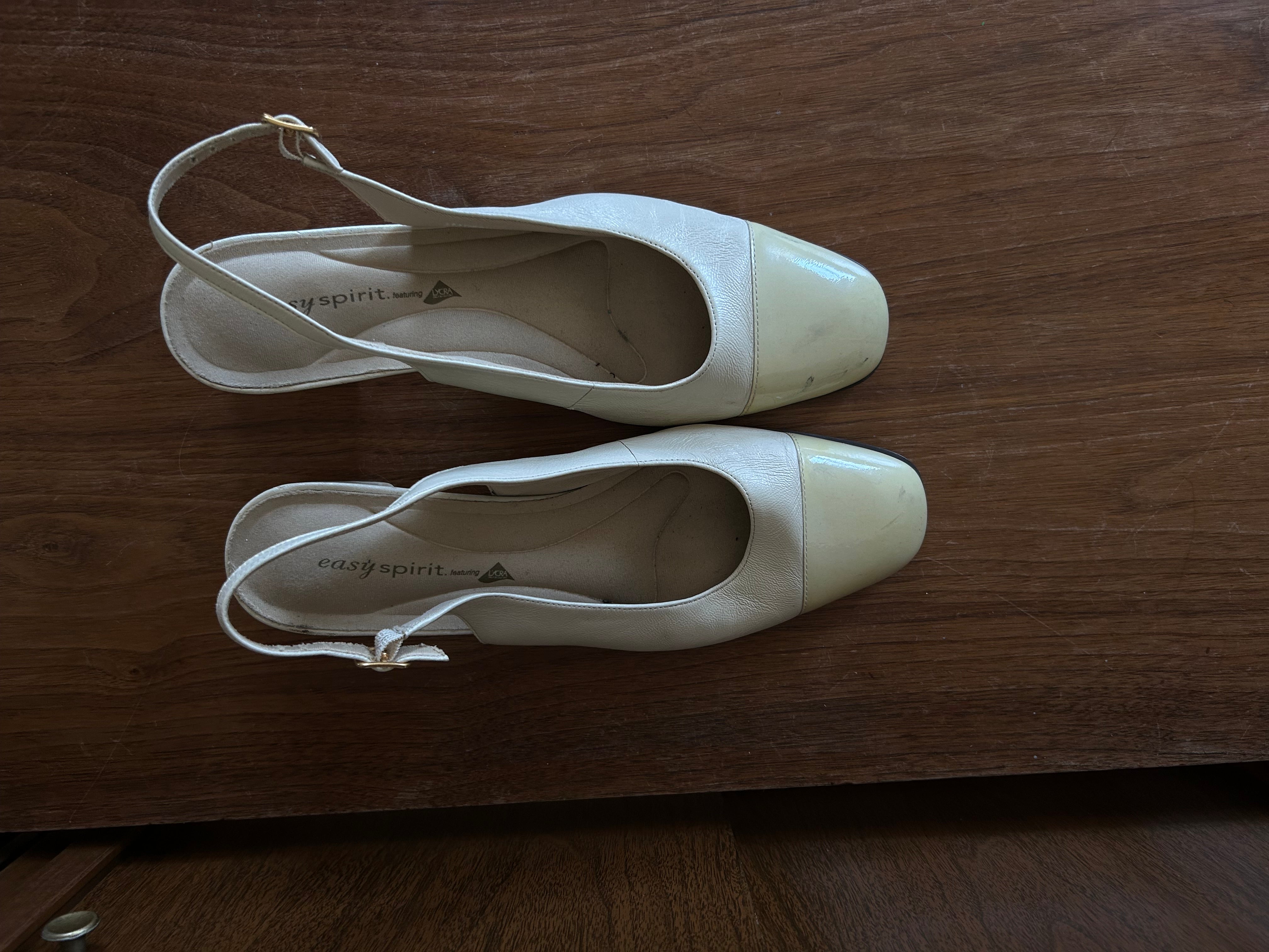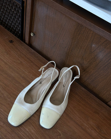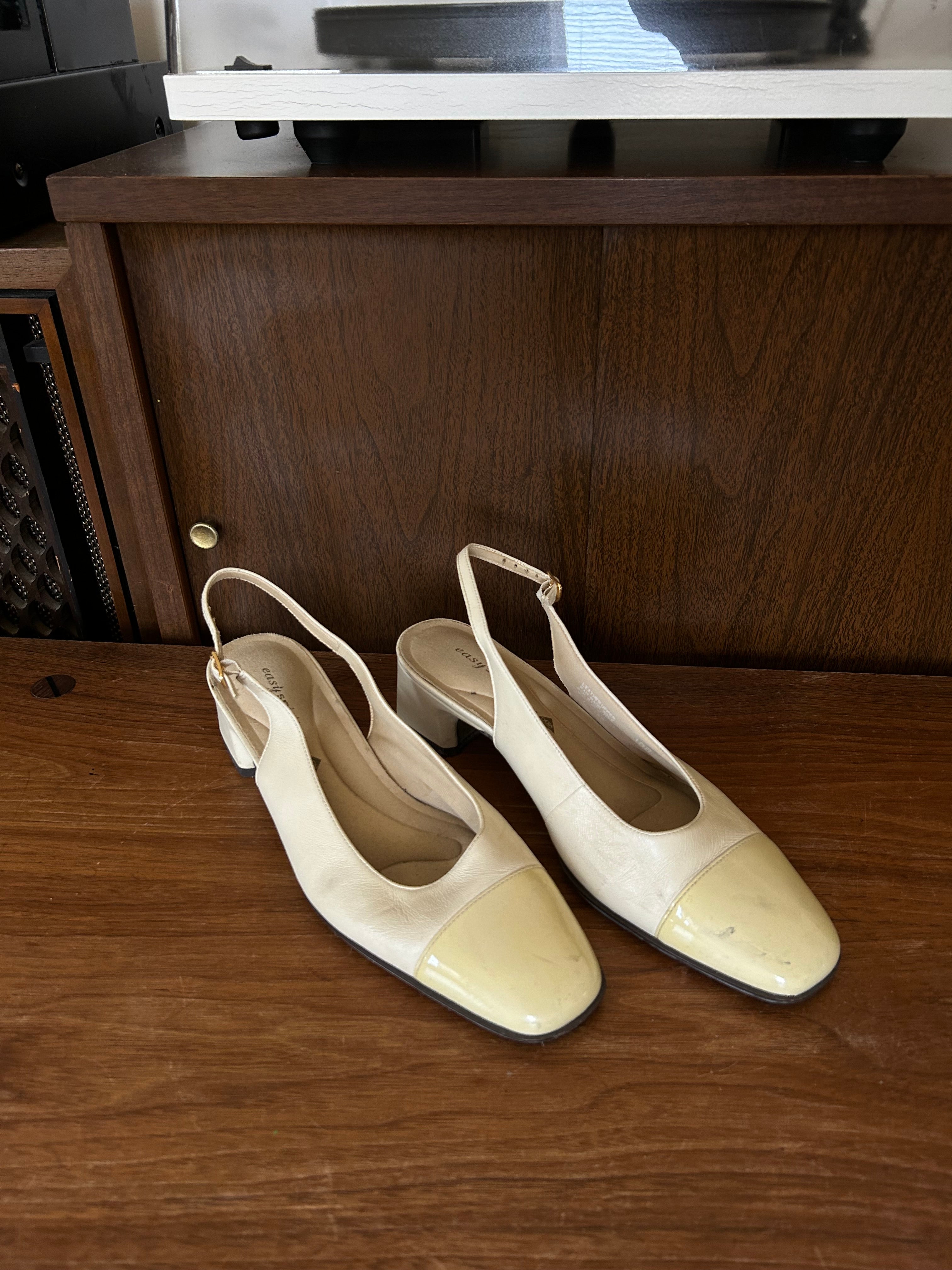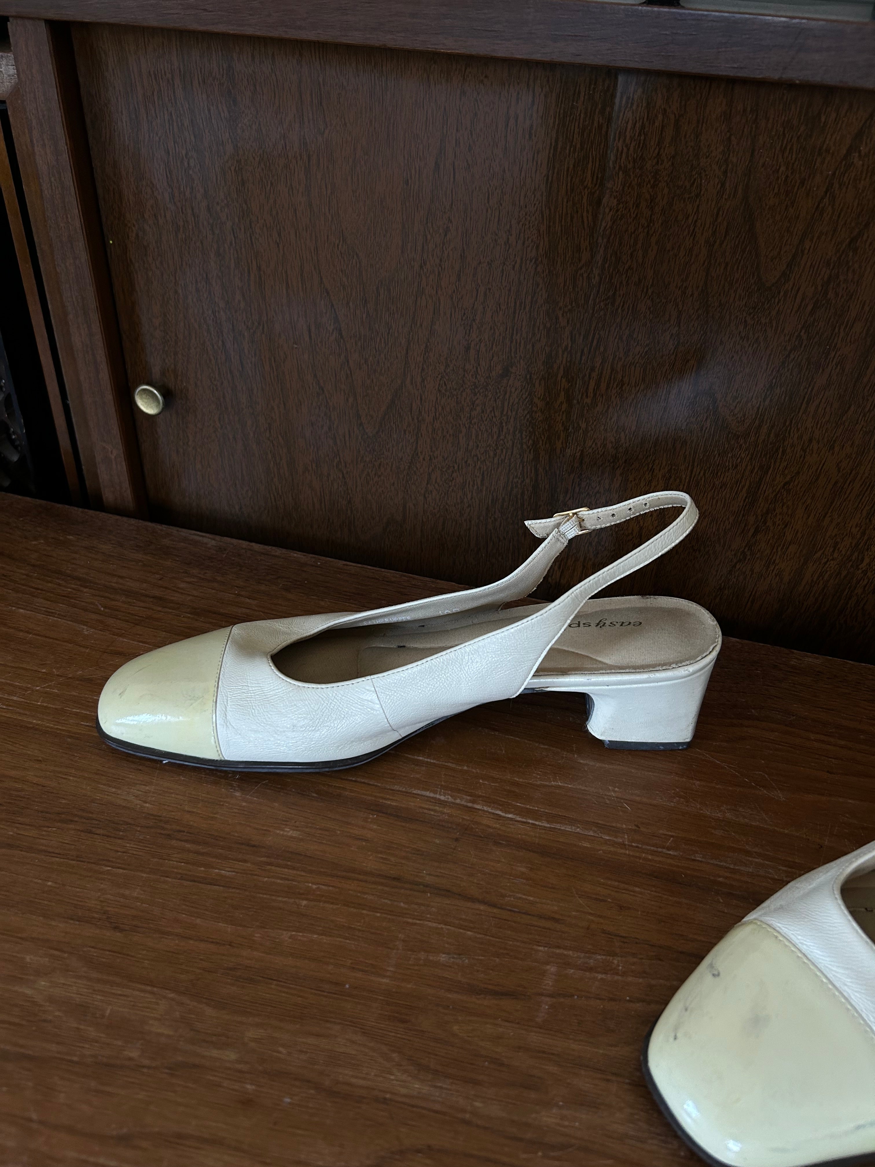 Ivory leather slingback - slight smudge on left toe (removable with proper cleaner).