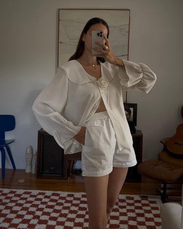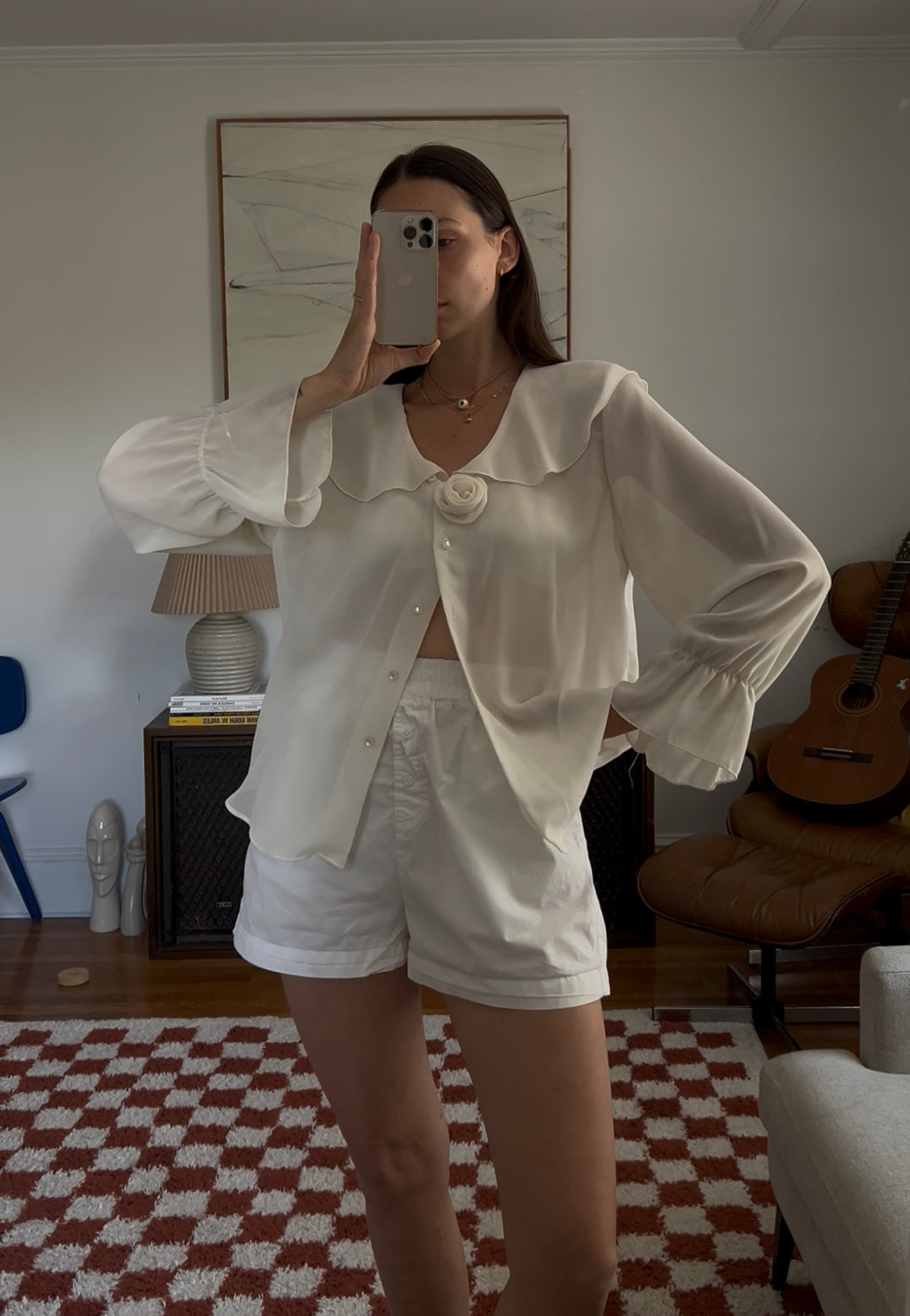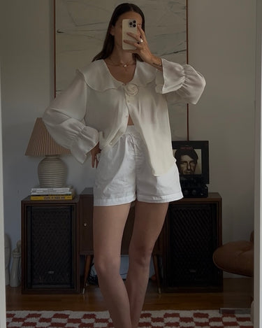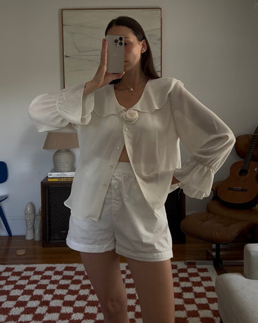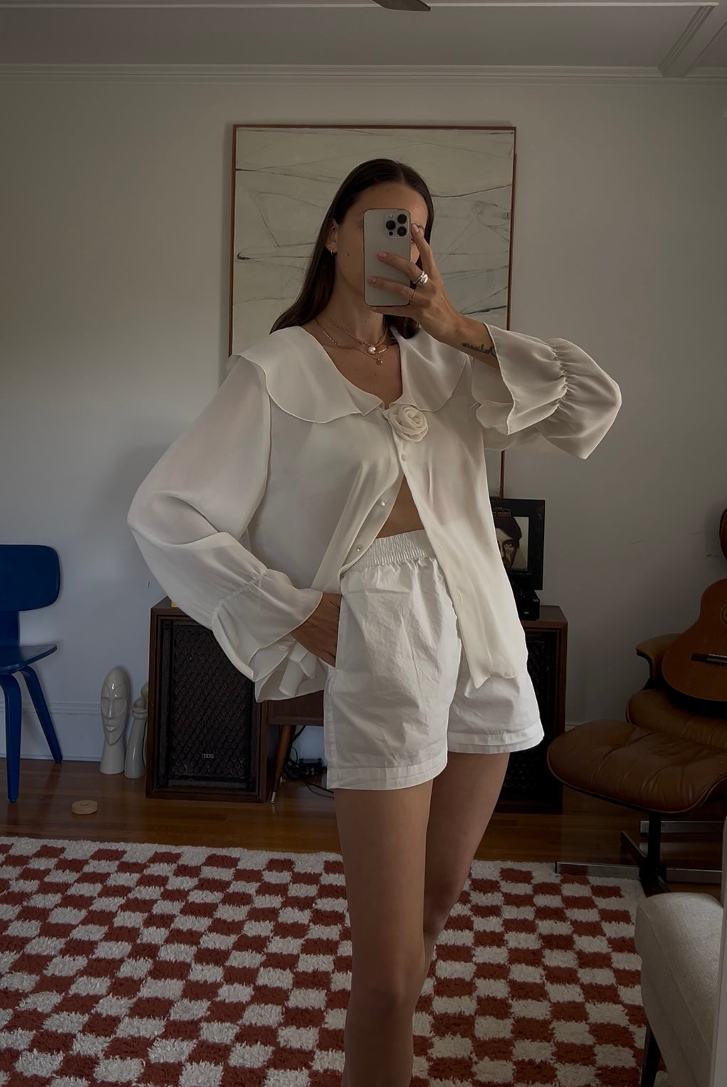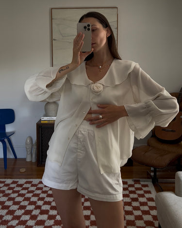 Romantic chiffon blouse - Rose detail and oversized ruffle collar.