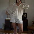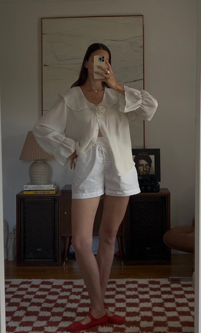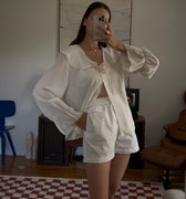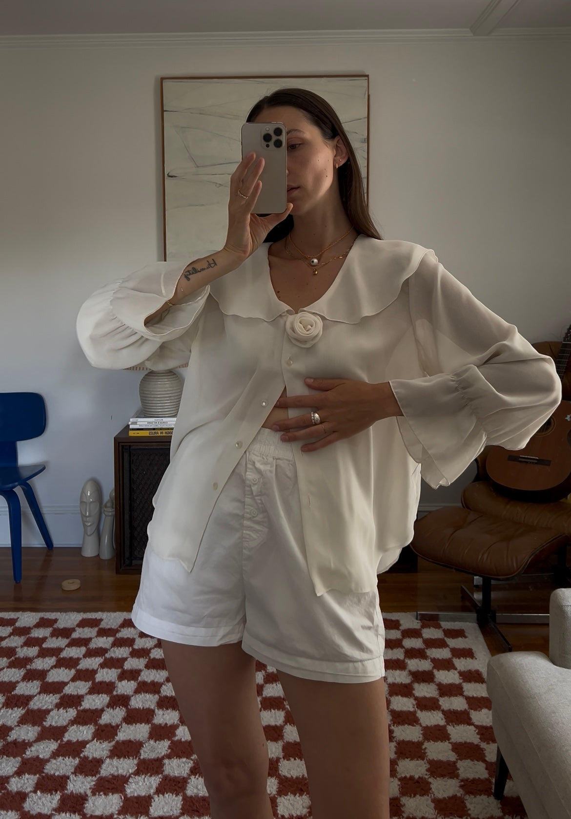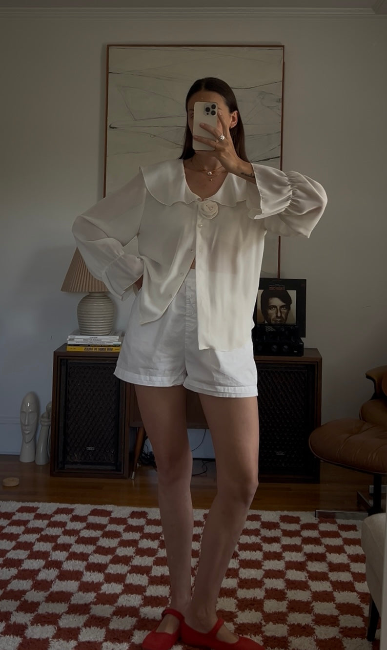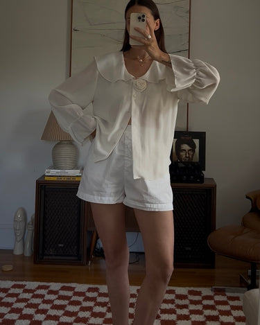 Romantic chiffon blouse - Rose detail and oversized ruffle collar.