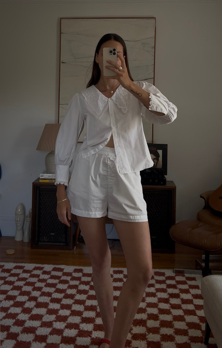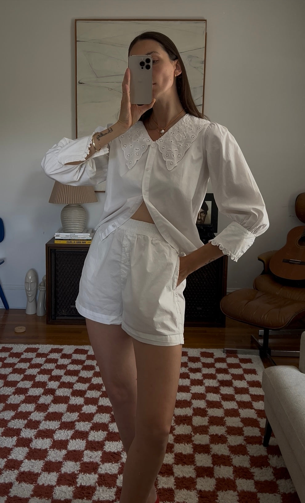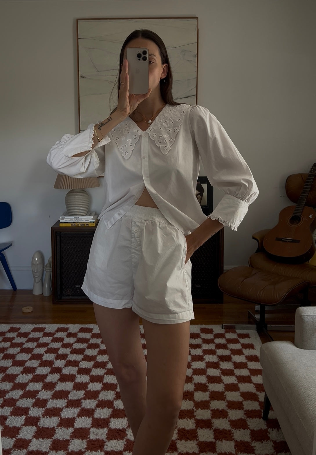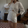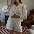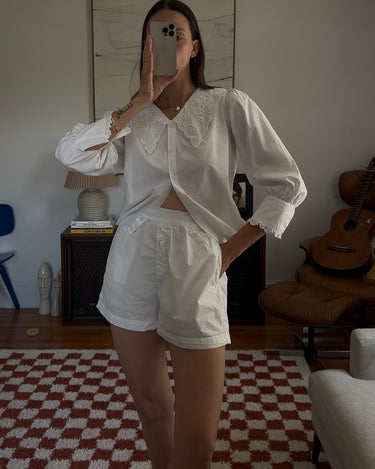 80’s Embrodered collar blouse. Lace trim detailing on sleeve hem and collar.