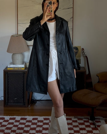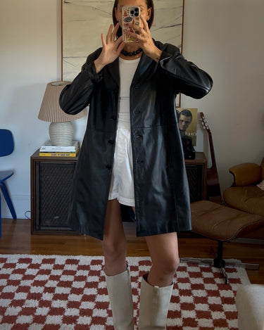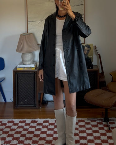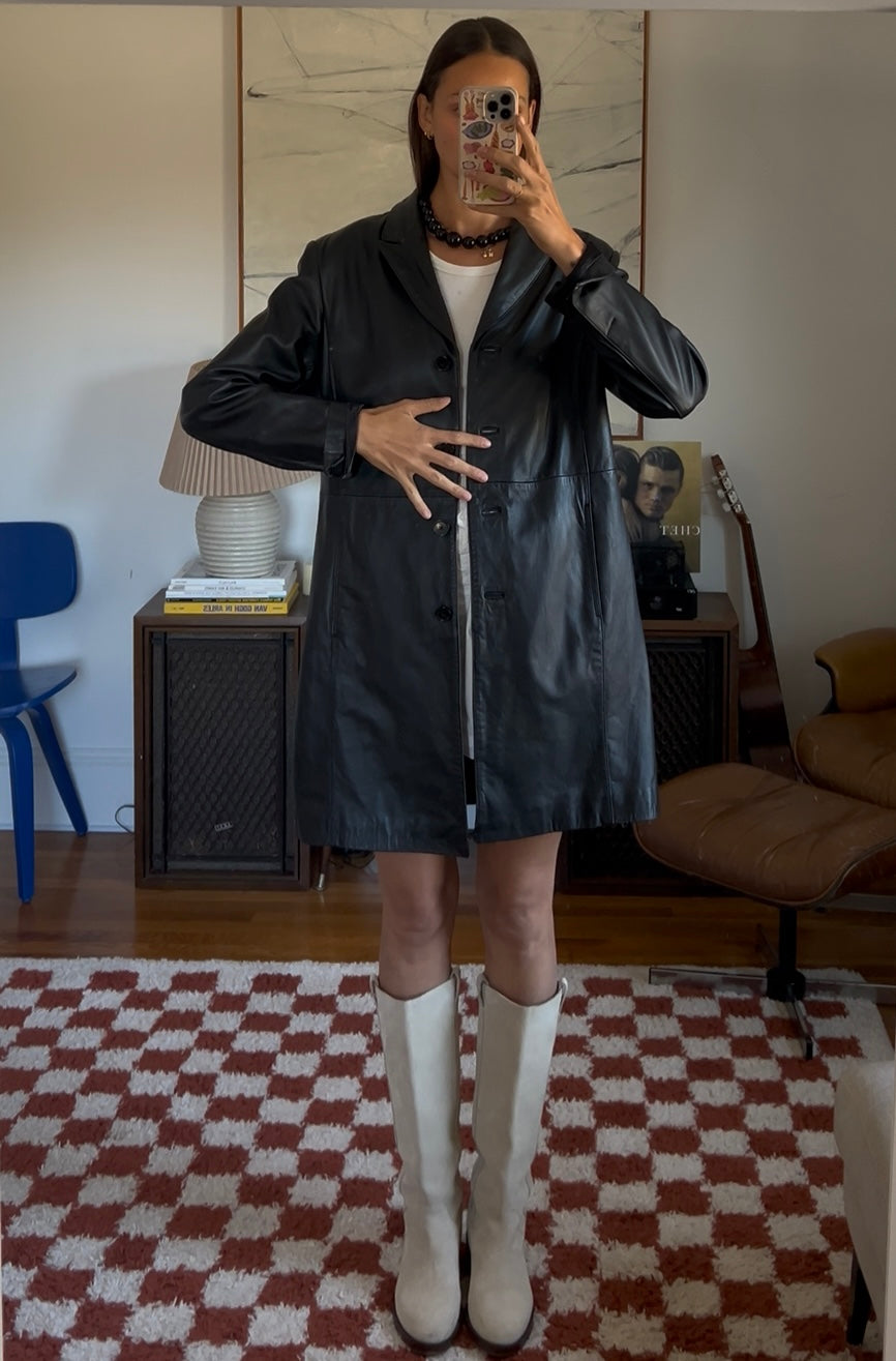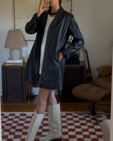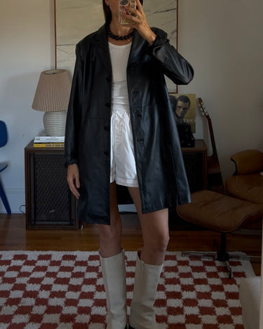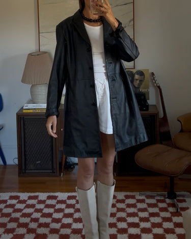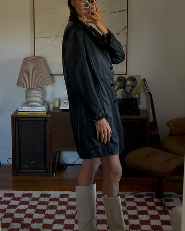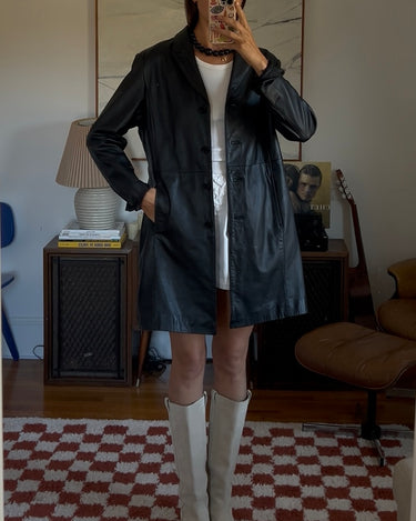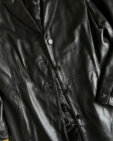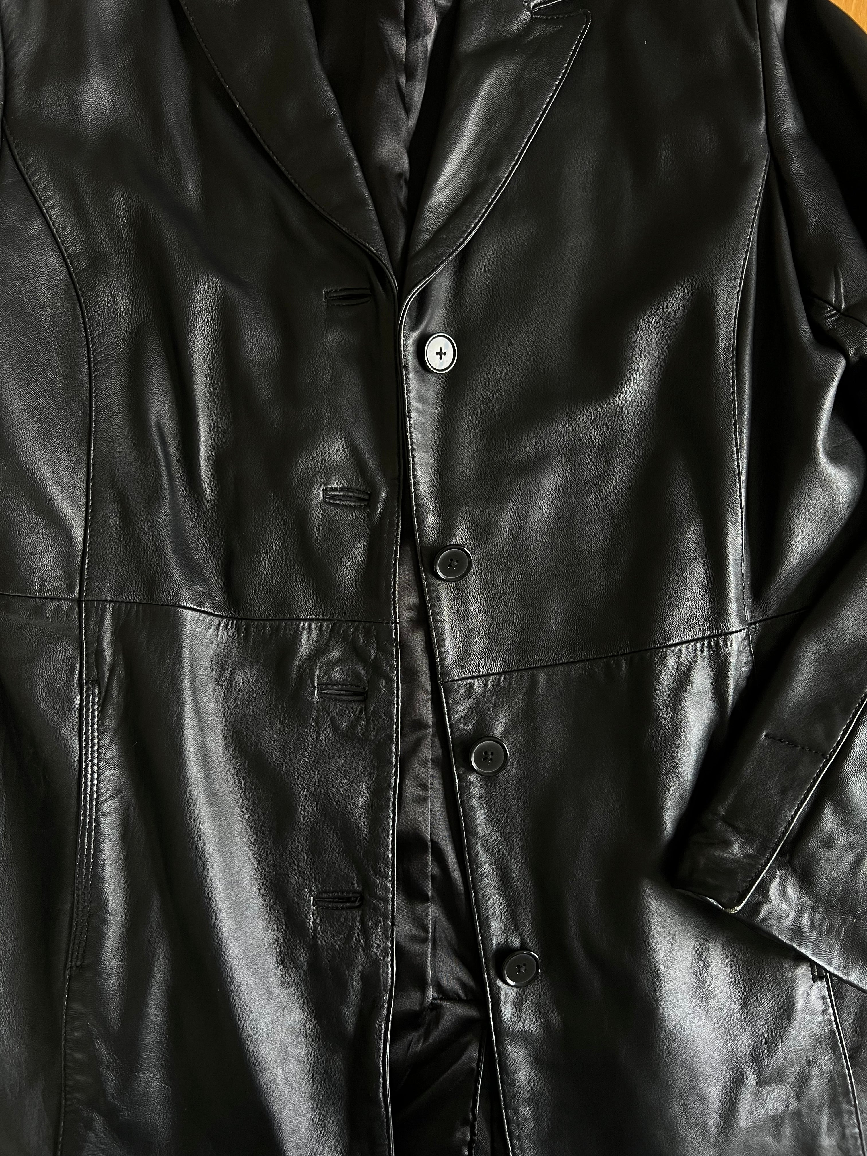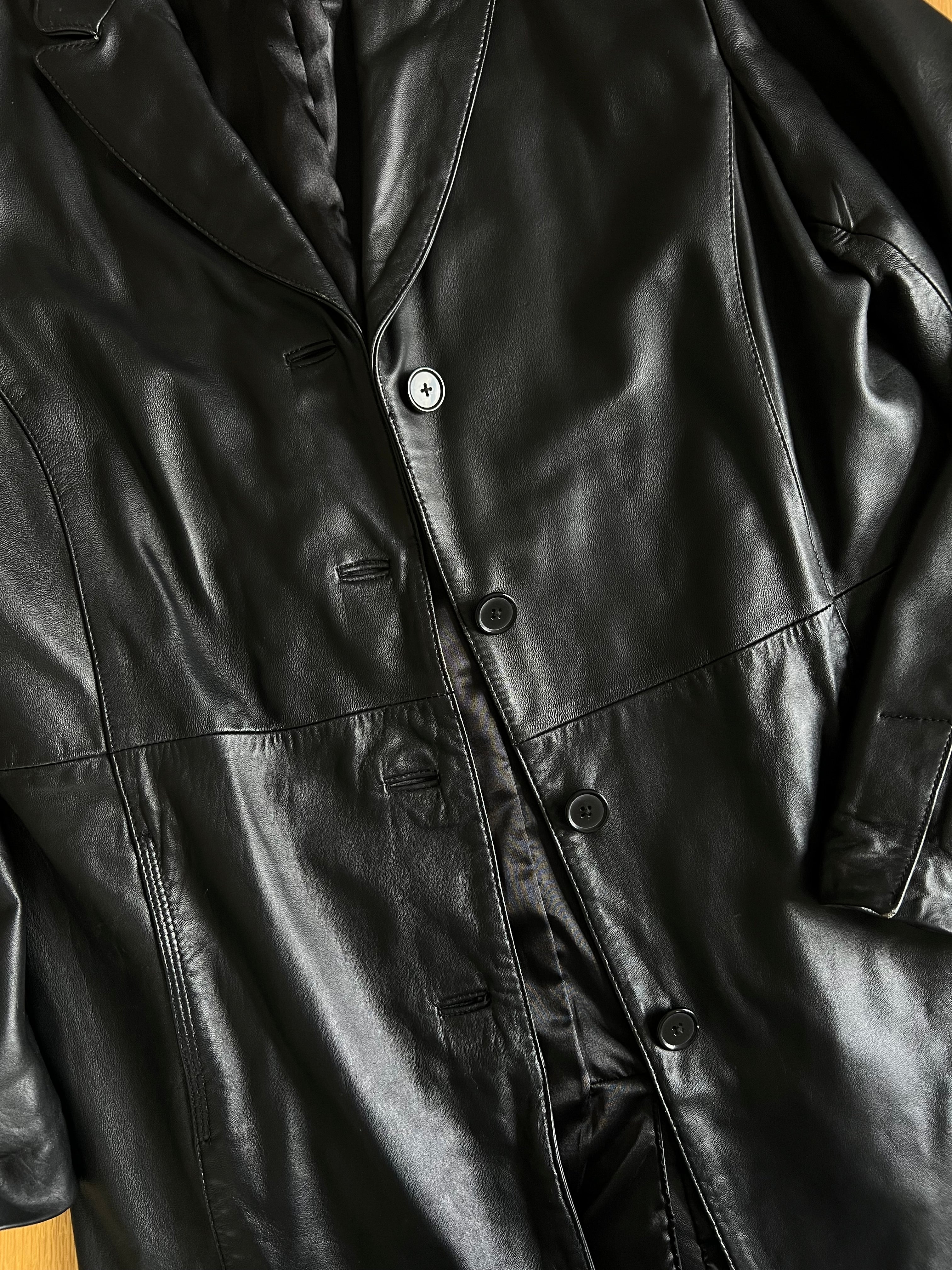 A gorgeous tender soft leather in this long fully lined jacket in impeccable condition.