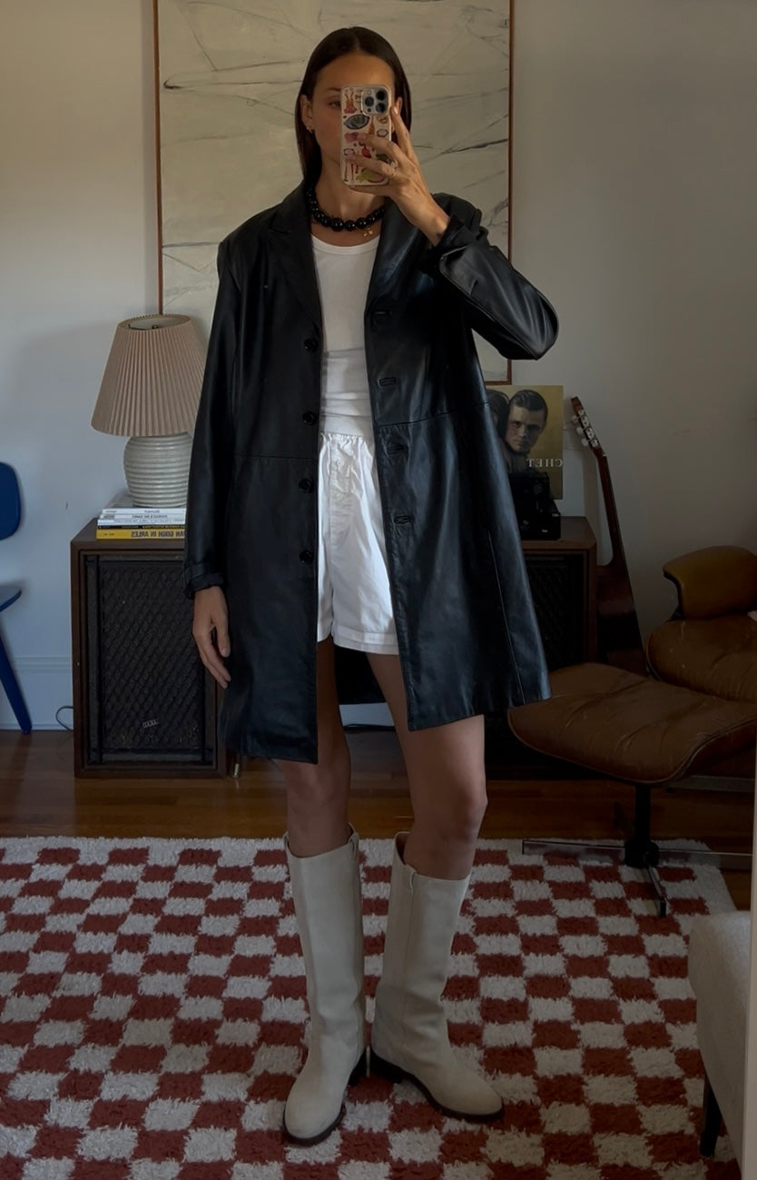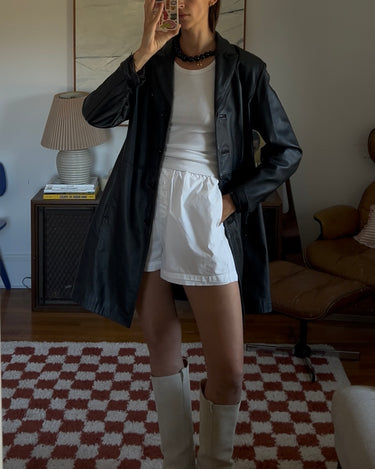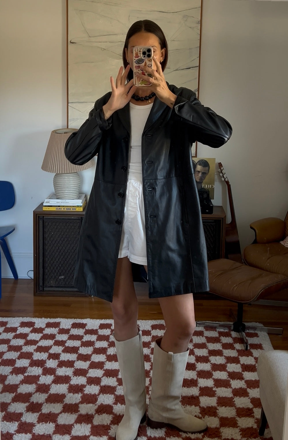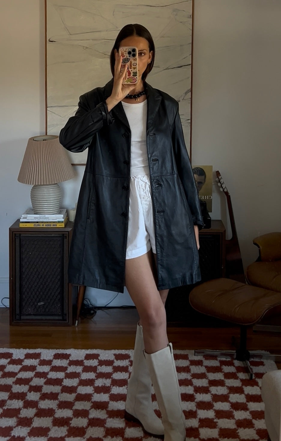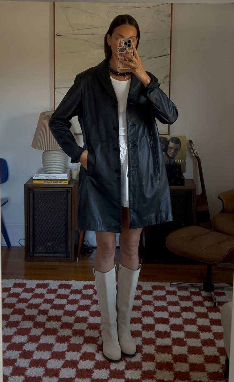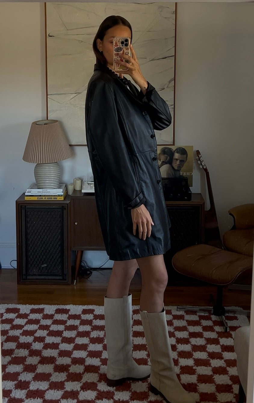A gorgeous tender soft leather in this long fully lined jacket in impeccable condition.