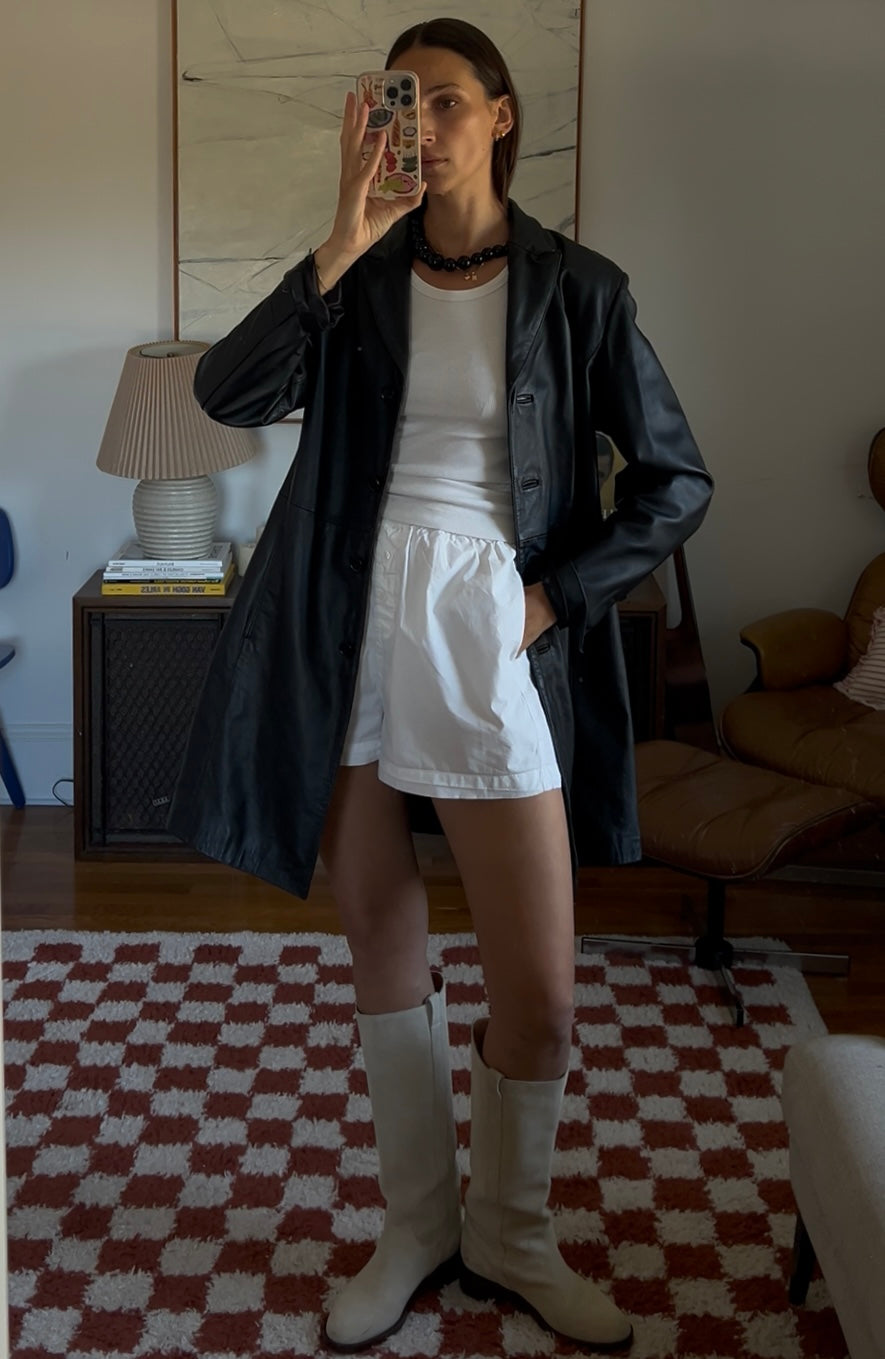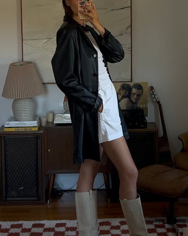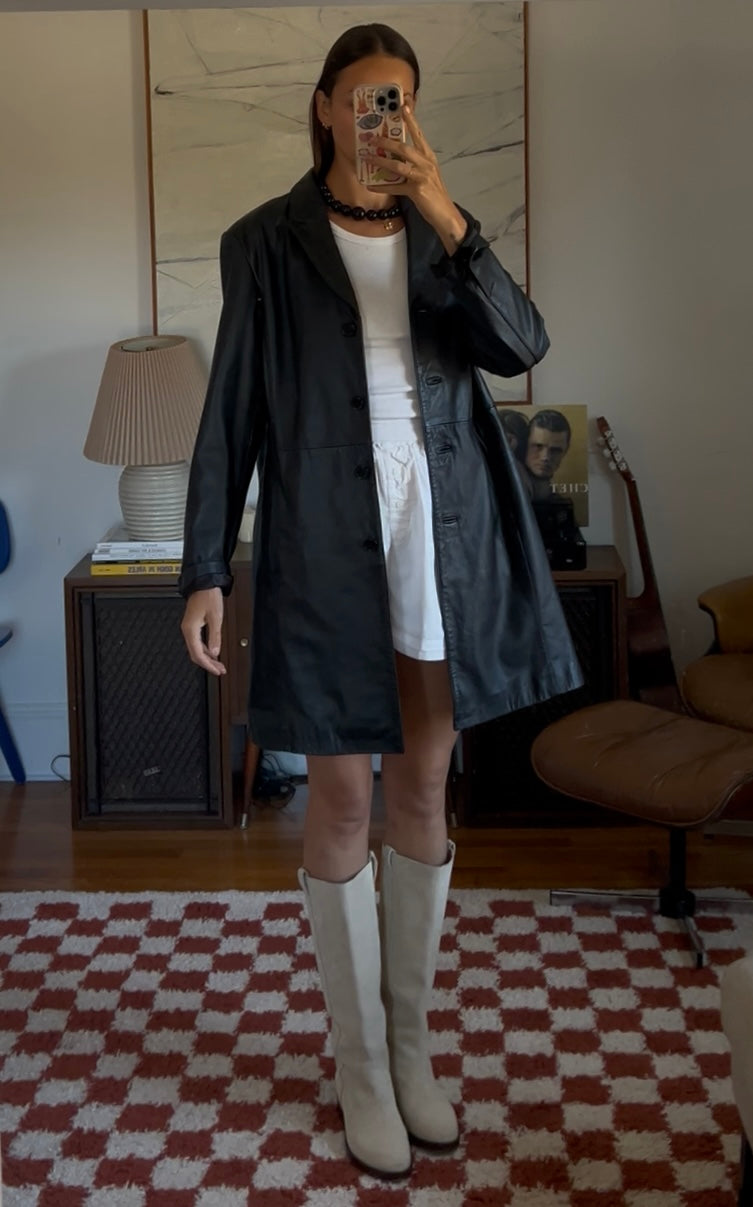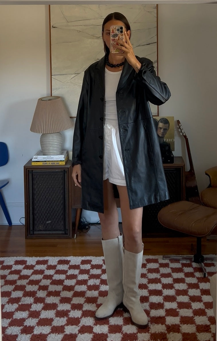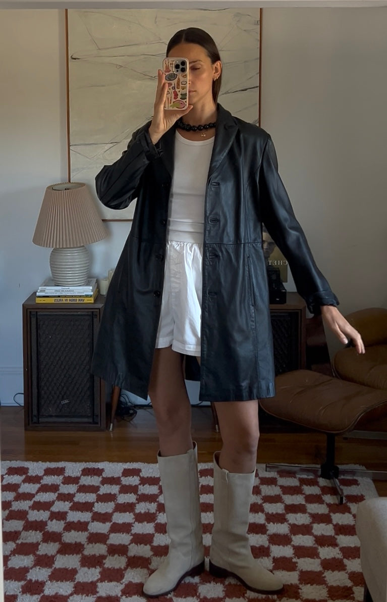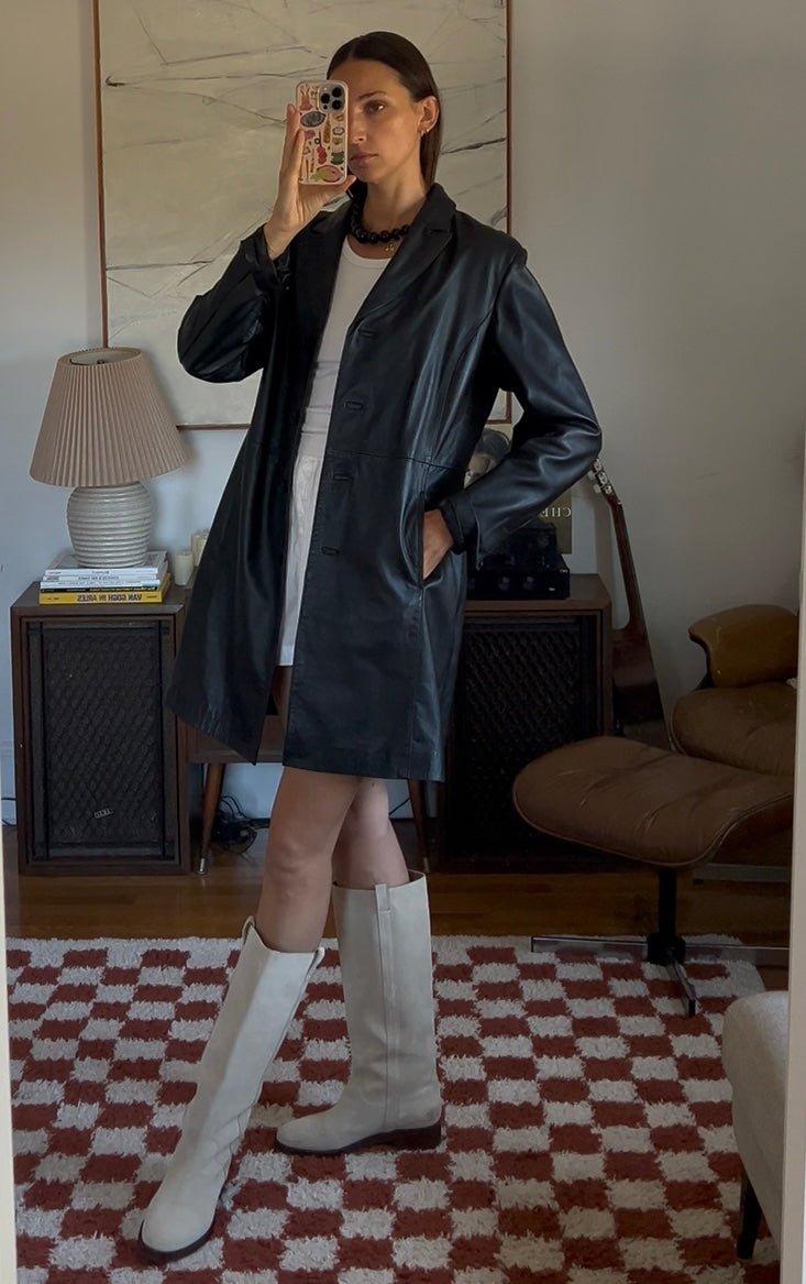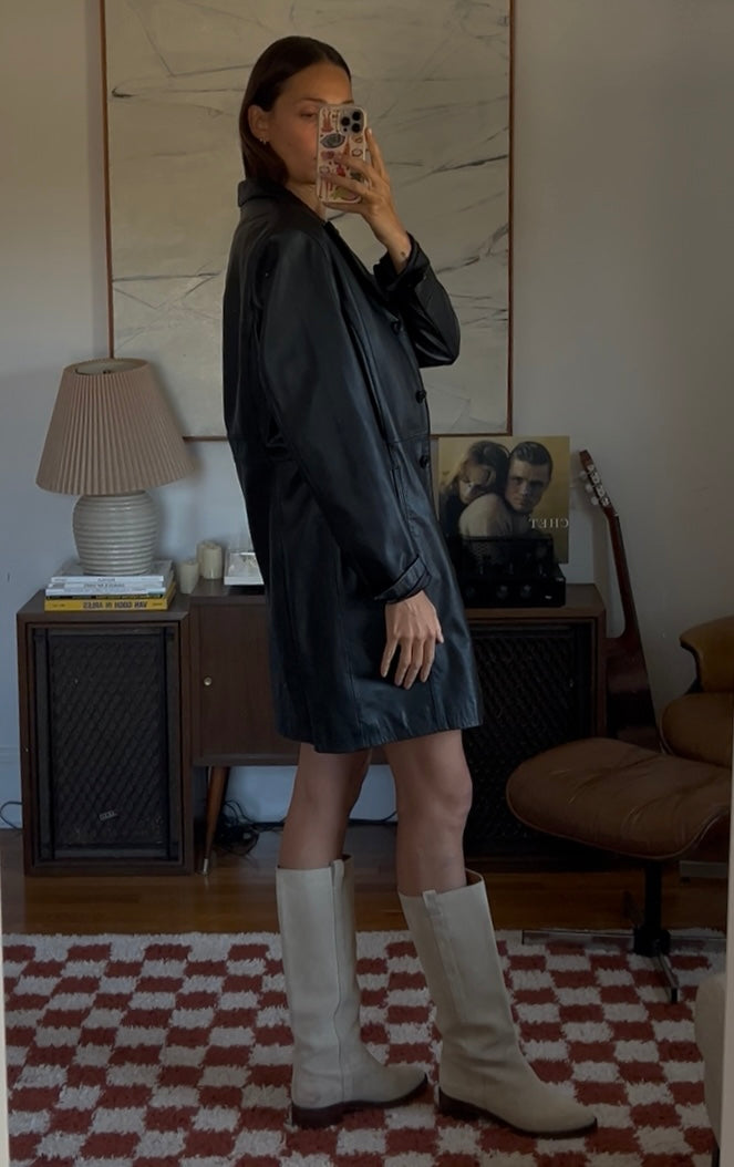 A gorgeous tender soft leather in this long fully lined jacket in impeccable condition.