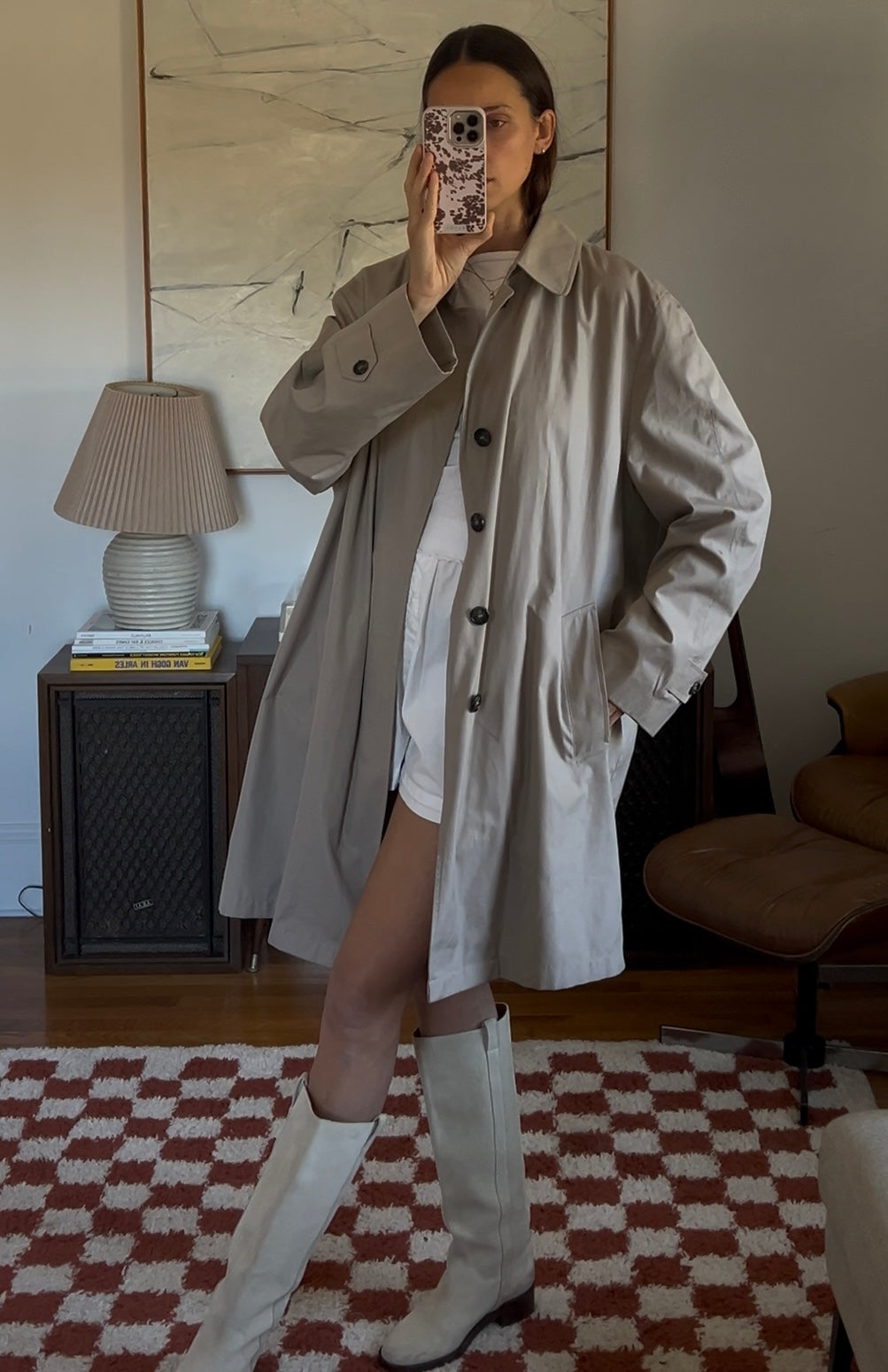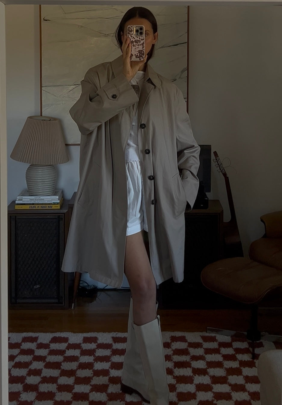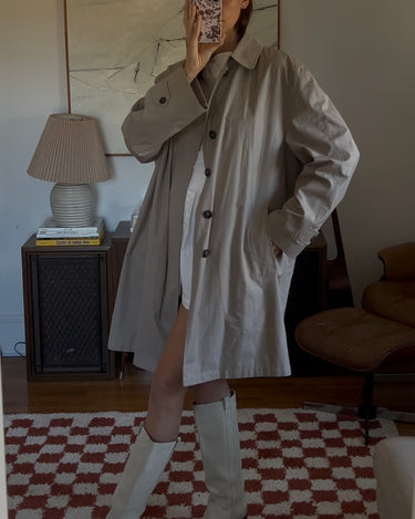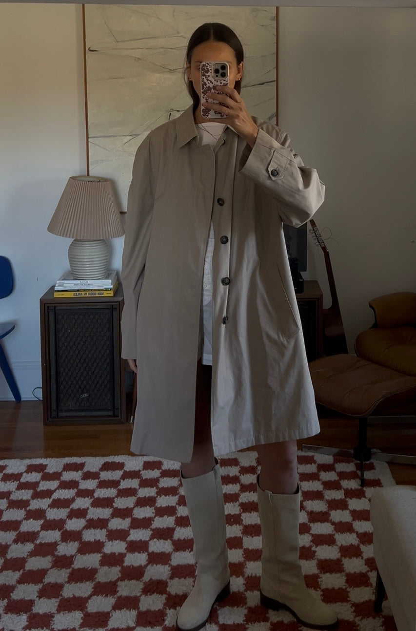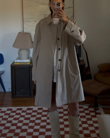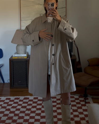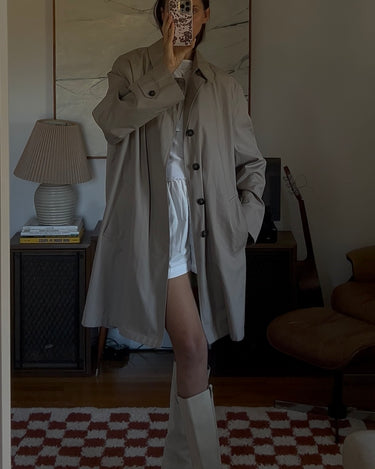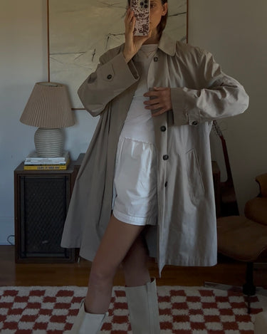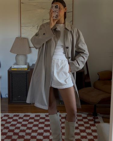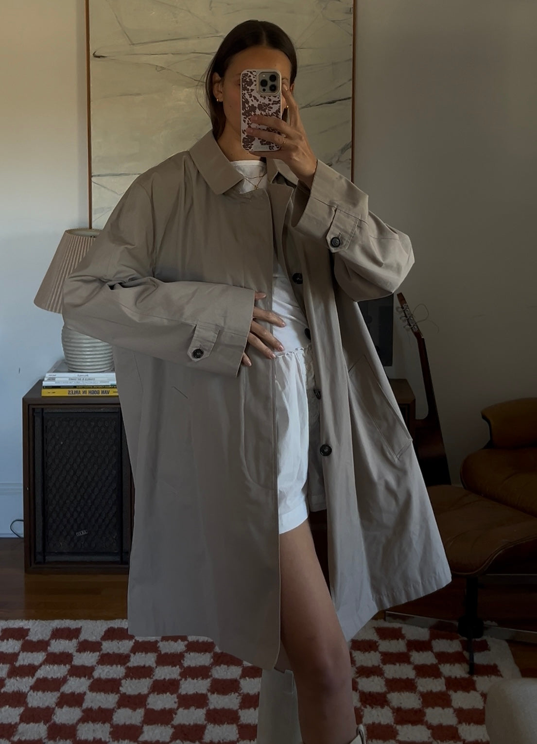 A lightweight Demi trench perfect for those in between seasons or over a sweater. Slightly shorter than a classic full length, trenchcoat and perfect for those who have a Lachi effortless fit or smaller frame.
