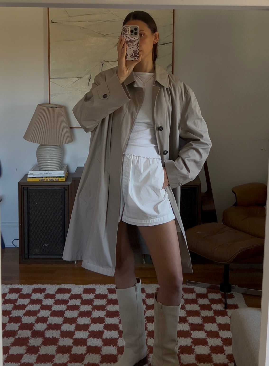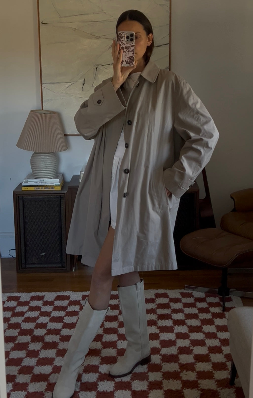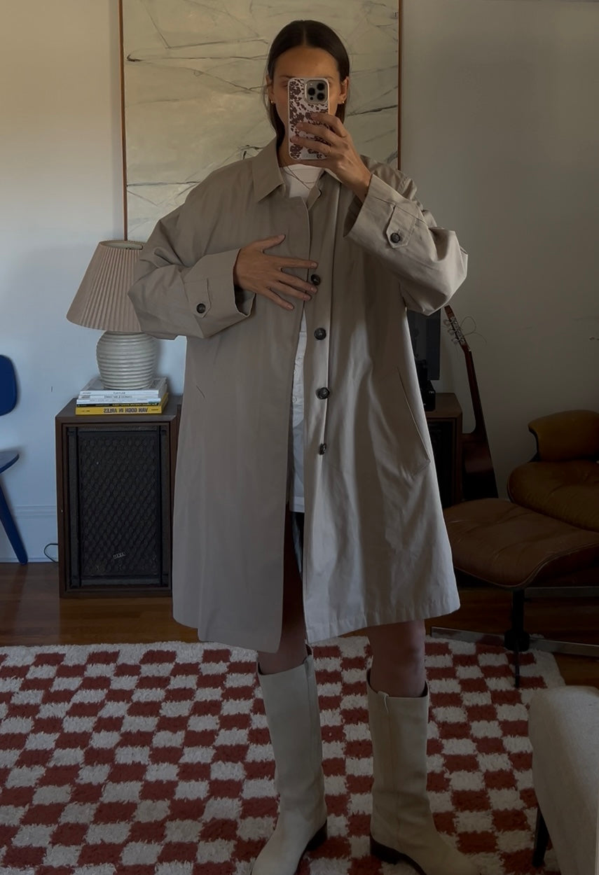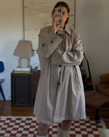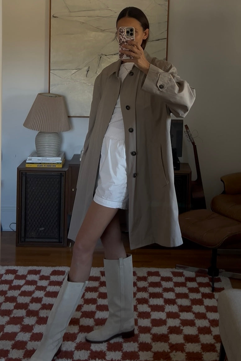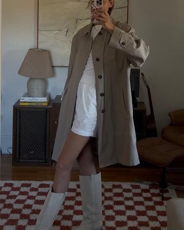 A lightweight Demi trench perfect for those in between seasons or over a sweater. Slightly shorter than a classic full length, trenchcoat and perfect for those who have a Lachi effortless fit or smaller frame.